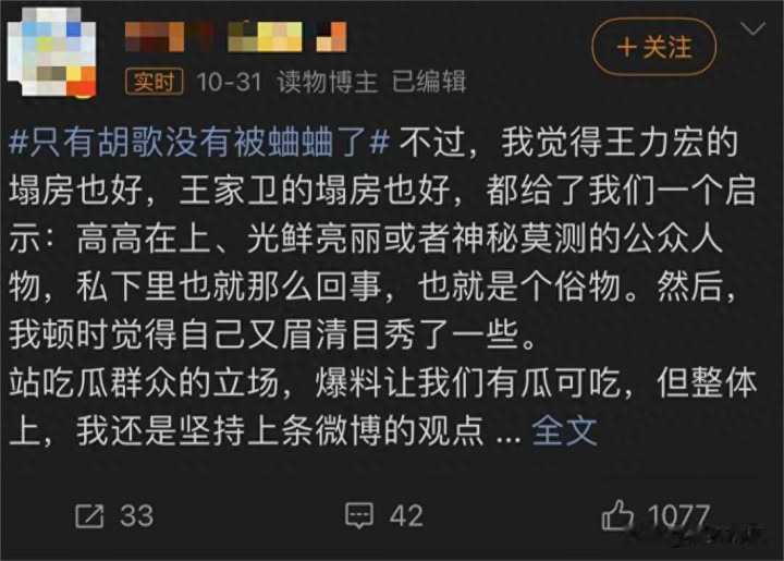 整个《繁花》剧场里面,似乎只有胡歌还没有被他在背后嚼过舌根子了。