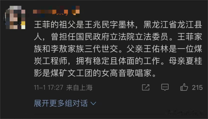 根据网友说的,称王菲的祖父大有来头,和李敖家族是世交,父亲是煤炭工程师,母亲是高音歌唱家。